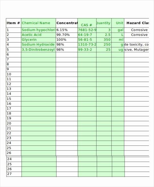 Sample of Chemical Inventory List Template