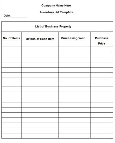 Inventory List Template Free Word Templates Personal Property Inventory List Template Doc